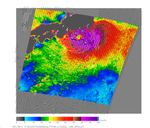 NASA's QuikScat satellite acquired this image of Category One Typhoon Fitow on Sept. 6, 2007, prior to the storm making landfall in Japan. The center of Fitow is indicated by the purple color. This image depicts wind speed in color and wind direction with small barbs. White barbs point to areas of heavy rain. The highest wind speeds, around the eye, are shown in purple.