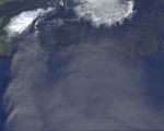 On Monday, April 19, 2010, the Advanced Spaceborne Thermal Emission and Reflection Radiometer (ASTER) instrument onboard NASA's Terra spacecraft obtained this image of the continuing eruption of Iceland's Eyjafjallajökull volcano. The image shows a white eruption column being transported to the south by the prevailing winds. The image is dominated by the gray, ash-laden eruption cloud dispersed south and east by the winds, blowing from the southern Iceland coast towards Europe. The bright red areas mark the hot lava at the present vent, and the still-hot lava flows from the earlier phases of the eruption. The high-temperature material is revealed by ASTER's thermal infrared bands. This image covers an area of 58.6 by 46.8 kilometers (36.3 by 29 miles). The resolution is 15 meters (49 feet) per pixel.