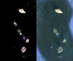 In December 2011, a new volcanic island began forming in the Red Sea, accompanied by lava fountains reaching up to 30 meters (95 feet) tall. By Jan. 14, 2012, when the Advanced Spaceborne Thermal Emission and Reflection Radiometer (ASTER) instrument on NASA's Terra spacecraft captured this image (left), the island clearly showed a central crater, similar to the surrounding islands, and was well above the wave height. The right image is from Google Earth and shows the area before the creation of this new island. This region is part of the Red Sea Rift where the African and Arabian tectonic plates are pulling apart. The image covers an area of 5.6 by 9.3 kilometers (3.5 by 5.8 miles), and is located at 15.1 degrees north latitude, 42.1 degrees east longitude.
