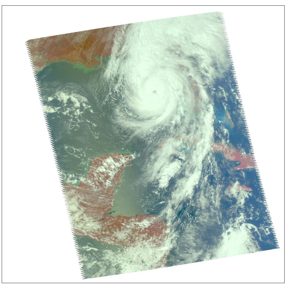Figure A was taken on Sept. 26 ,1:41 p.m., in visible wavelengths by the Visible/Near-Infrared spectrometer that is included with AIRS instrument suite on NASA's Aqua satellite.