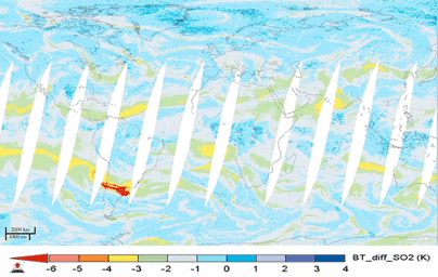 AIRS sulfur dioxide data are used to alert the air transportation industry about volcanic eruptions. Combined with measurements of volcanic ash, they provide a long-term record of the effects of volcanoes on the atmosphere. AIRS Near-Real Time (NRT) processing and imagery are provided by a collaborative effort between NASA's Goddard Earth Science Data and Information Services Center (GES DISC), and the AIRS Team at NASA's Jet Propulsion Laboratory, Pasadena, California. AIRS NRT is an element of the Land, Atmosphere Near real-time Capability for NASA's Earth Observing System (LANCE). More information on LANCE is available at http://earthdata.nasa.gov/lance.
