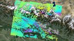 In the map, surface displacements are seen as color contours (or "fringes"), where each color cycle represents 8 inches (20 centimeters) of surface motion. The contours show the land around Kathmandu has moved upward by more than 40 inches (1 meter). Areas without the color contours have snow or heavy vegetation that affects the radar measurements. Scientists use these maps to build detailed models of the fault and associated land movements to better understand the impact on future earthquake activity. The background image is from Google Earth.
