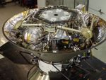 In this photo, NASA's InSight Mars lander is stowed inside the inverted back shell of the spacecraft's protective aeroshell. It was taken on July 13, 2015, in a clean room of spacecraft assembly and test facilities at Lockheed Martin Space Systems, Denver, during preparation for vibration testing of the spacecraft.