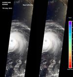 The Multi-angle Imaging SpectroRadiometer (MISR) instrument aboard NASA's Terra satellite captured this image of the eye of Hurricane Bonnie, located about 500 miles (800 kilometers) southwest of the southern tip of Baja California, Mexico, at about 11 a.m. local time on July 7, 2022. Initially classified as a tropical storm on July 2, Bonnie intensified to a Category 3 hurricane on July 5. It was later downgraded, and as of July 8, was considered a tropical storm.