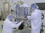 Technicians prep the OCO-2 instrument for shipping at JPL. The instrument consists of three parallel, high-resolution spectrometers, integrated into a common structure and fed by a common telescope. Each spectrometer spreads reflected sunlight into its various colors like a prism, focusing on a different, narrow color range to detect light with the specific colors absorbed by carbon dioxide and molecular oxygen. The amount of light absorbed at these specific colors is proportional to the concentration of carbon dioxide in the atmosphere.