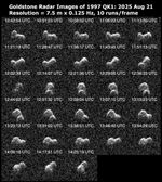 Asteroid 1997 QK1 is shown to be an elongated, peanut-shaped near-Earth object in this series of 28 radar images obtained by the Deep Space Network's Goldstone Solar System Radar on Aug. 21, 2025. The asteroid is about 660 feet (200 meters) long and completes one rotation every 4.8 hours. It passed closest to our planet on the day before these observations were made at a distance of about 1.9 million miles (3 million kilometers), or within eight times the distance between Earth and the Moon.
