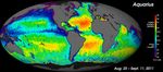 The map reveals predominantly well-known ocean salinity features, such as higher salinity in the subtropics, higher average salinity in the Atlantic Ocean compared to the Pacific and Indian Oceans, and lower salinity in rainy belts near the equator, in the northernmost Pacific Ocean and elsewhere. These features are related to large-scale patterns of rainfall and evaporation over the ocean, river outflow and ocean circulation. Aquarius will monitor how these features change over time and study their link to climate and weather variations.
