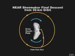 This plot shows NEAR Shoemaker's projected path from orbit to the surface of Eros on Feb. 12. Viewed from the sun, Eros is moving in a clockwise direction as it spins on its axis, while the spacecraft moves counterclockwise in a circular orbit 35 kilometers (22 miles) from the asteroid's center. The pair will be about 316 million kilometers (196 million miles) from Earth.