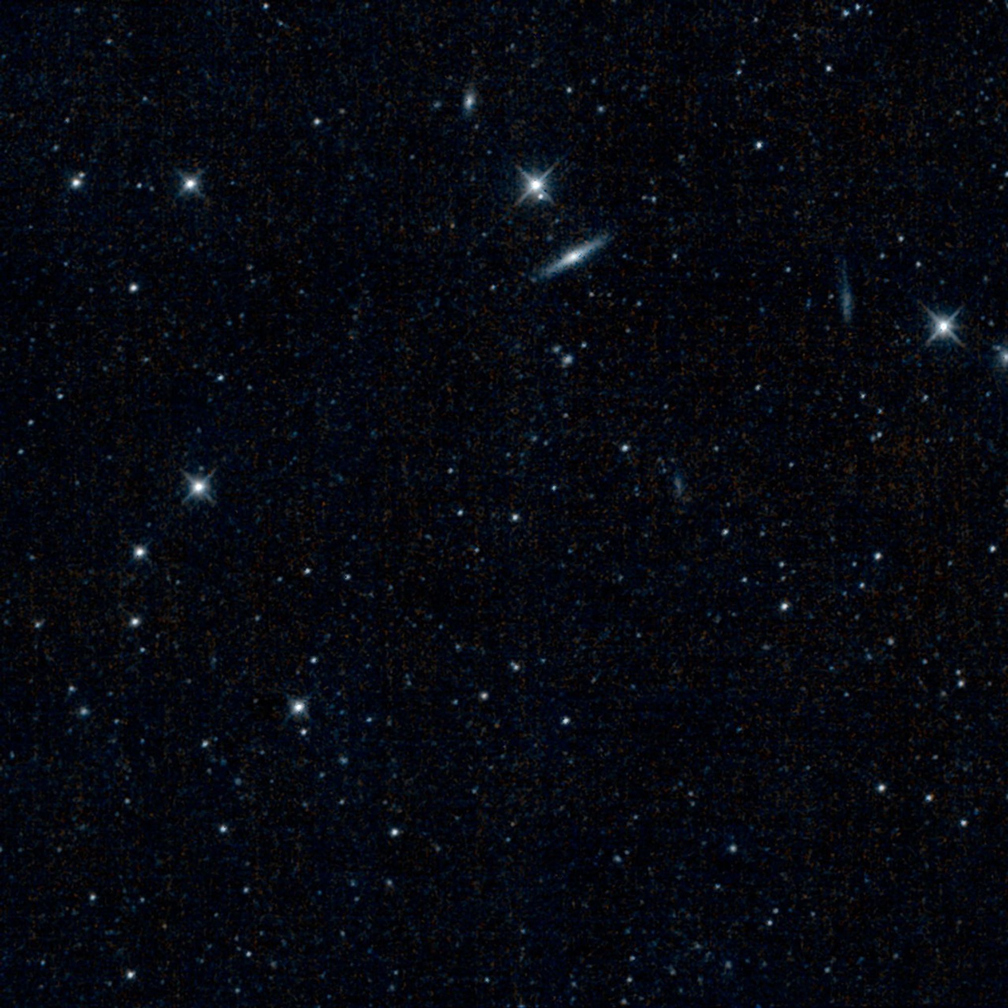 This is one of the first images captured by the revived NEOWISE mission, after more than two years of hibernation. It shows a patch of sky in the constellation Canes Venatici, or the Hunting Dogs. The galaxy seen near the center is NGC 4111, the largest member of a small group of galaxies located 50 million light-years away. The galaxy is similar in brightness to our Milky Way galaxy, but with a diameter of 70,000 light-years, it is slightly smaller. NGC 4111's core contains a supermassive black hole actively feeding off surrounding gas and dust.