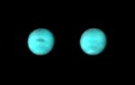 These pictures of Neptune were obtained by NASA's Voyager 2 on Apr. 26,1989. The picture on the right was taken five hours after that at left, during which time the planet rotated 100 degrees.