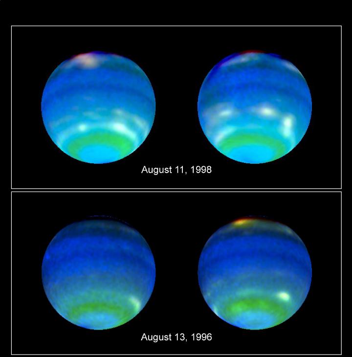 "We can see regions of latitude where Neptune consistently generates bright clouds," said Sromovsky. The regions are both above and below the planet's equator, but he added that it was uncertain what their explanation is in terms of atmospheric circulation.