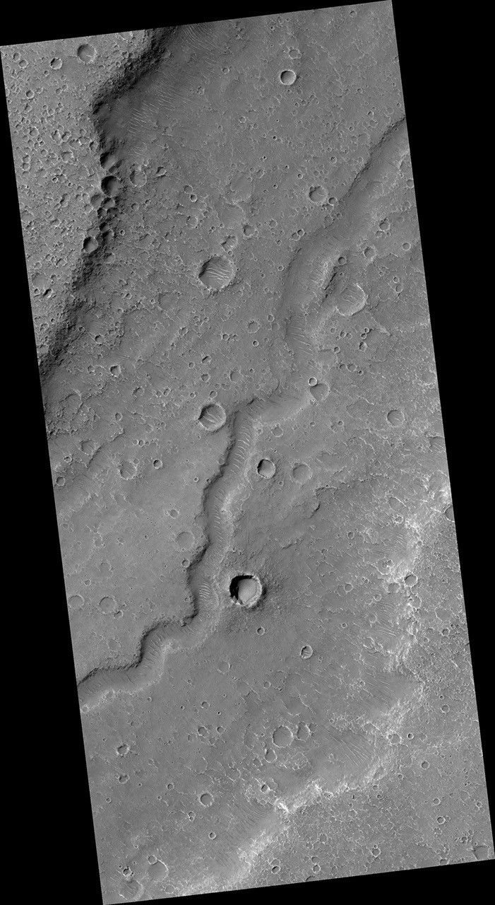This channel system flowed to the southwest toward the huge Hellas impact basin.