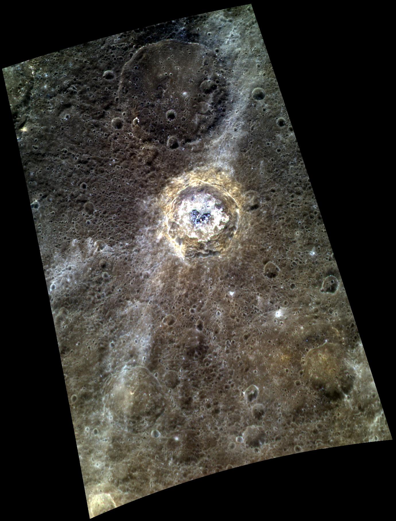 This image was acquired as a high-resolution targeted color observation. Targeted color observations are images of a small area on Mercury's surface at resolutions higher than the 1-kilometer/pixel 8-color base map. During MESSENGER's one-year primary mission, hundreds of targeted color observations were obtained. During MESSENGER's extended mission, high-resolution targeted color observations are more rare, as the 3-color base map covered Mercury's northern hemisphere with the highest-resolution color images that are possible.