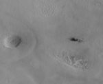 Meanwhile, the Context Camera team also did some homework: Before asking for the High Resolution Imaging Science Experiment to look at candidate new impact sites, such as the dark spots shown here, they make the best determination possible as to when the features formed. If the features result from a meteor impact, then the team can state approximately when the impact occurred. In the case shown here, the impact occurred sometime between June 4 and Aug. 10, 2008. At the time it was found, this candidate impact site was so new that the Context Camera team very quickly suggested that the High Resolution Imaging Science Experiment take a look so that a good example of a very new impact site could be examined.