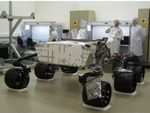 Wheels were first attached to NASA's Mars Science Laboratory rover in August 2008. The rover and its descent stage and cruise stage are being assembled and tested at NASA's Jet Propulsion Laboratory, Pasadena, Calif., for launch in 2009.