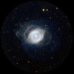 NGC 7293, better known as the Helix nebula, displays its ultraviolet glow courtesy of NASA's Galaxy Evolution Explorer (GALEX). The Helix is the nearest example of a planetary nebula, which is the eventual fate of a star, like our own Sun, as it approaches the end of its life. As it runs out of fuel, the star expels its outer envelope of gas outward to form a nebula like the Helix. The remaining core of the star is a small, hot, dense remnant known as a white dwarf.