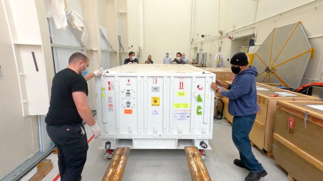 The NISAR mission is a collaboration between NASA and the Indian Space Research Organization (ISRO) that will use two kinds of synthetic aperture radar (SAR) to track subtle changes in Earth's surface: S-band SAR and L-band SAR. (The "S" and "L" denote the wavelength of their signal.) On March 19, 2021, the assembly, test, and launch team at NASA's Jet Propulsion Laboratory in Southern California received the S-band SAR from its partner in India.