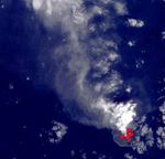 Nishinoshima Volcano is a small volcanic island located about 1000 km south of Tokyo. Recent activity began in December 2019, and has continued. ASTER captured this image of an ash and steam plume emanating from the central crater. Thermal infrared data is superimposed on a visible-infrared color image to highlight the lave flows that have flowed down the volcano's flanks. The image was acquired March 22, 2020, covers an area of 12.6 by 12.3 km, and is located at 27.3 degrees east, 140.8 degrees east.