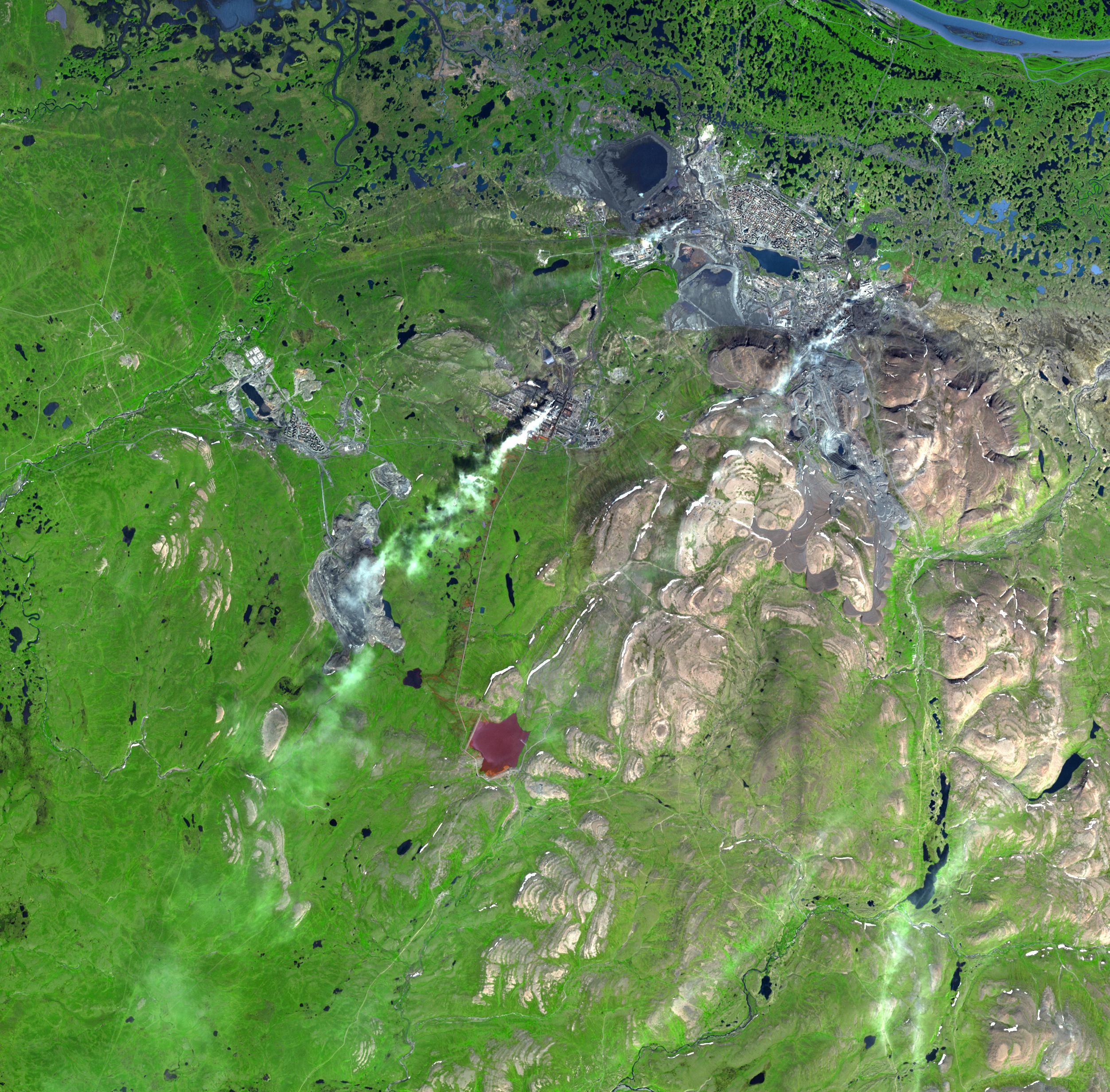 Norilsk is a major city in Krasnoyarsk Krai, Russia, and the northernmost city in Siberia. The city was founded in the 1930s as a settlement for the Norilsk mining-metallurgic complex, sitting near the largest nickel-copper-palladium deposits on Earth. Mining and smelting of nickel, copper, cobalt, platinum, palladium are the major industries. The nickel ore is smelted on site at Norilsk. The smelting is directly responsible for severe pollution, generally acid rain and smog. By some estimates, 1 percent of the entire global emissions of sulfur dioxide comes from this one city. Heavy metal pollution near Norilsk is so severe that it is now economically feasible to mine the soil, which has been polluted so severely that it has economic grades of platinum and palladium.
