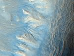 Many of the other features observed in and around this crater are indicative of an ice-rich terrain, which may lend credence to the water formation hypothesis for these gullies. The most notable of these features is "scalloped" terrain in and around the crater. This type of terrain has been interpreted as a sign of surface caving, perhaps due to sublimation of underlying ice. (Sublimation is the process of a solid changing directly to a gas.)