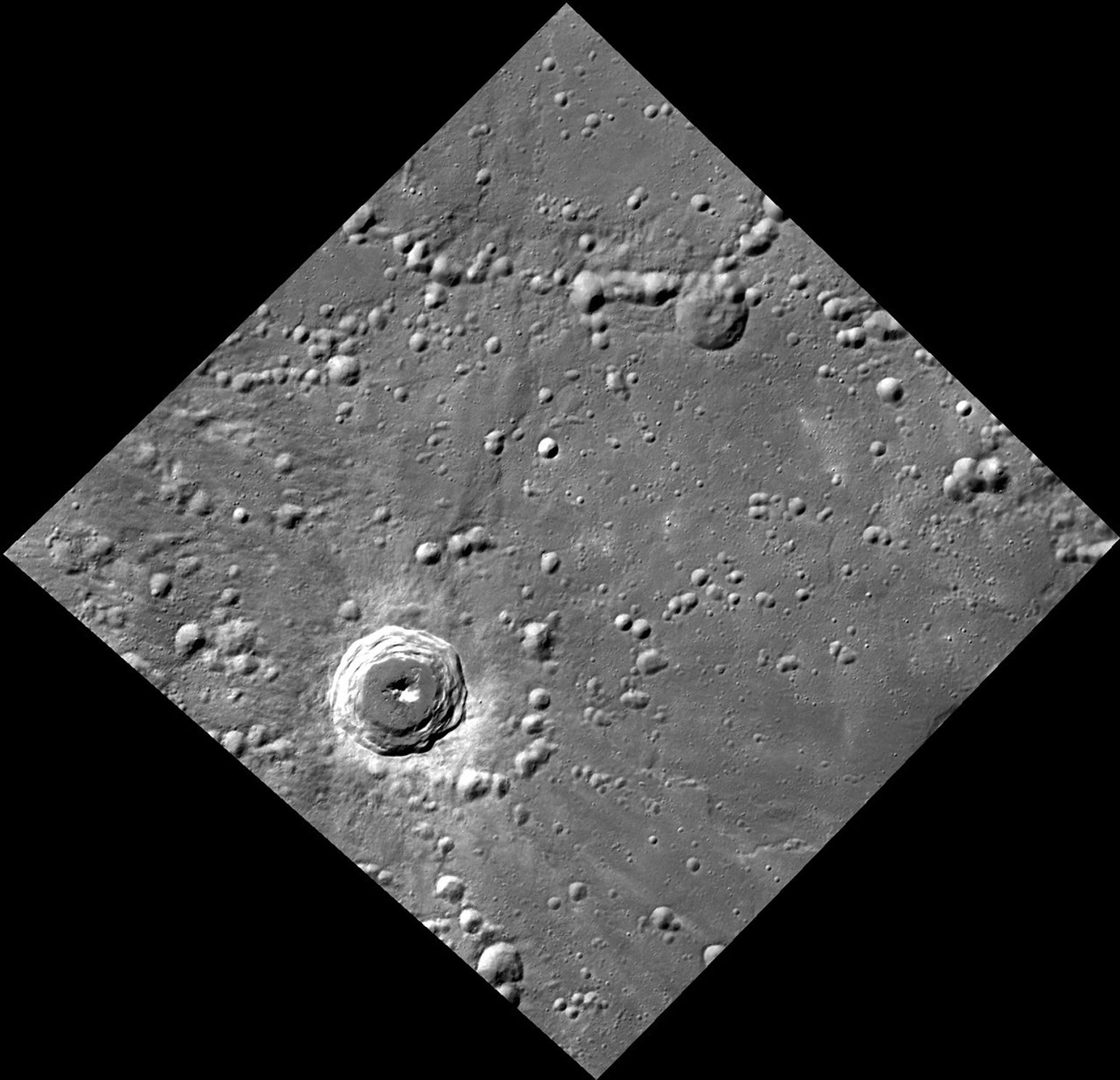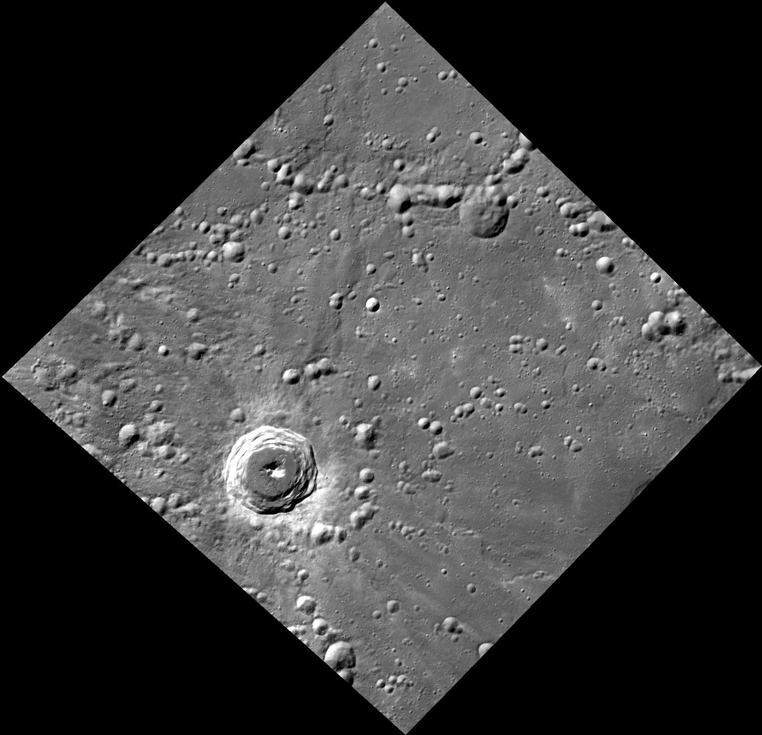 Scale: The complex crater is 33 km (20 miles) in diameter