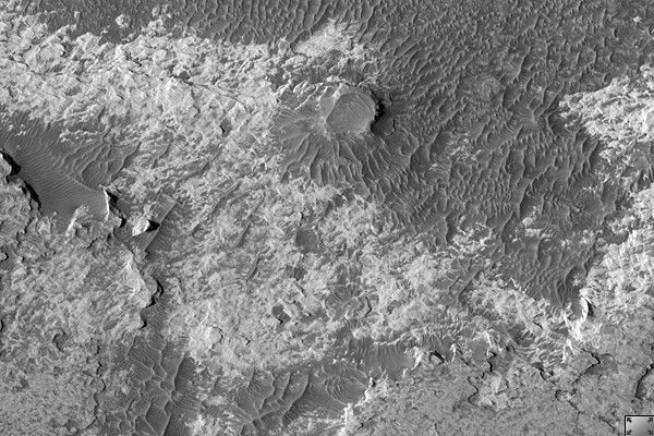 This HiRISE image (PSP_002324_1815) shows the contact between the Hematite Bearing Plains and Etched Terrain in Northern Meridiani Planum.
