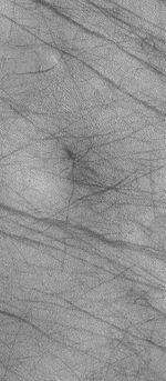 This Mars Global Surveyor (MGS) Mars Orbiter Camera (MOC) image shows a typical view of the martian northern plains during northern summer. In spring and summer, dust devils crisscross the plains, creating dark, filamentary streaks such as those shown here. MOC has rarely observed actual active dust devils on the northern plains, suggesting that these probably occur at a time of day that is different than the ~2 p.m. local time when MGS flies over these surfaces. As with high latitudes on Earth, daytime lasts longer in summer than at lower latitudes; thus, dust devils might occur earlier or later in the afternoon than is common in equatorial settings.
