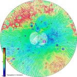 This view of the topography of Mercury's north polar region complements yesterday's image of the day (PIA16950). Both were used during The Challenge of Discovery Educator Workshop, which was held last weekend. Workshop participants learned about MESSENGER's recent evidence for water ice near Mercury's poles through an activity that explored different datasets of Mercury's north polar region. Those activity materials can be viewed and download from this workshop website. In this view, MLA tracks across the surface are colored by the height of the surface relative to a reference sphere with a radius of 2440 kilometers.