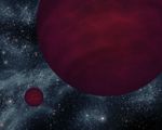 This artist's concept shows the dimmest star-like bodies currently known -- twin brown dwarfs referred to as 2M 0939. The twins, which are about the same size, are drawn as if they were viewed close to one of the bodies.