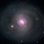 Galaxy NGC 1068 is shown in visible light and X-rays in this composite image. High-energy X-rays (magenta) captured by NASA's Nuclear Spectroscopic Telescope Array, or NuSTAR, are overlaid on visible-light images from both NASA's Hubble Space Telescope and the Sloan Digital Sky Survey. The X-ray light is coming from an active supermassive black hole, also known as a quasar, in the center of the galaxy. This supermassive black hole has been extensively studied due to its relatively close proximity to our galaxy. NGC 1068 is about 47 million light-years away in the constellation Cetus.