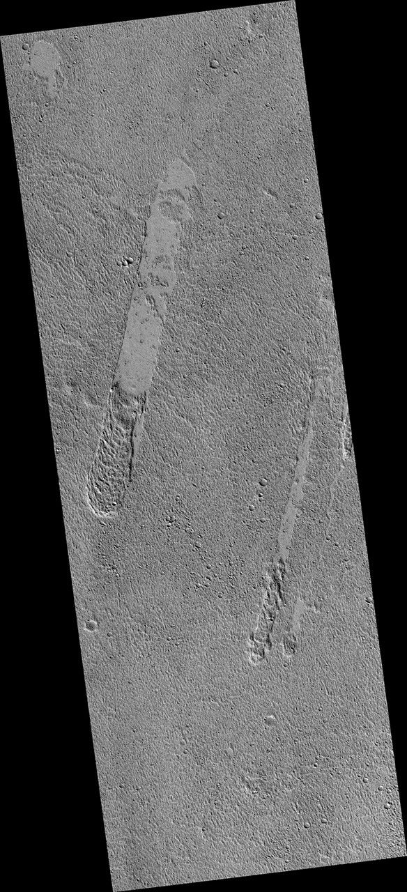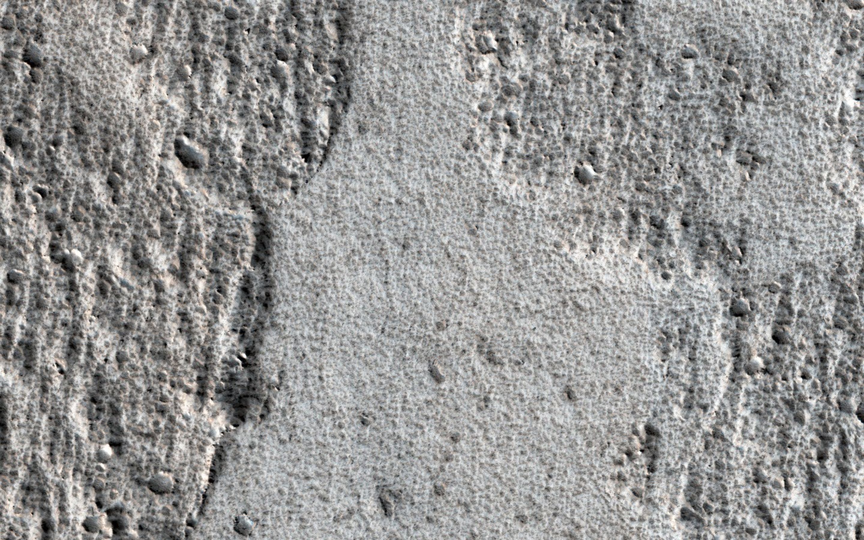 Amazonis Planitia is a broad plain on Mars, covered with ancient lava. This image shows an interesting feature of an old lava flow.