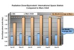 Data from Odyssey's Martian radiation environment experiment show that the radiation dose equivalent at Mars is two to three times greater than that aboard the International Space Station. The differences are primarily due to the magnetic field surrounding the Earth, which provides considerable shielding to astronauts in orbit. Mars lacks a strong magnetic field and is therefore more exposed to the harshest elements of space radiation.