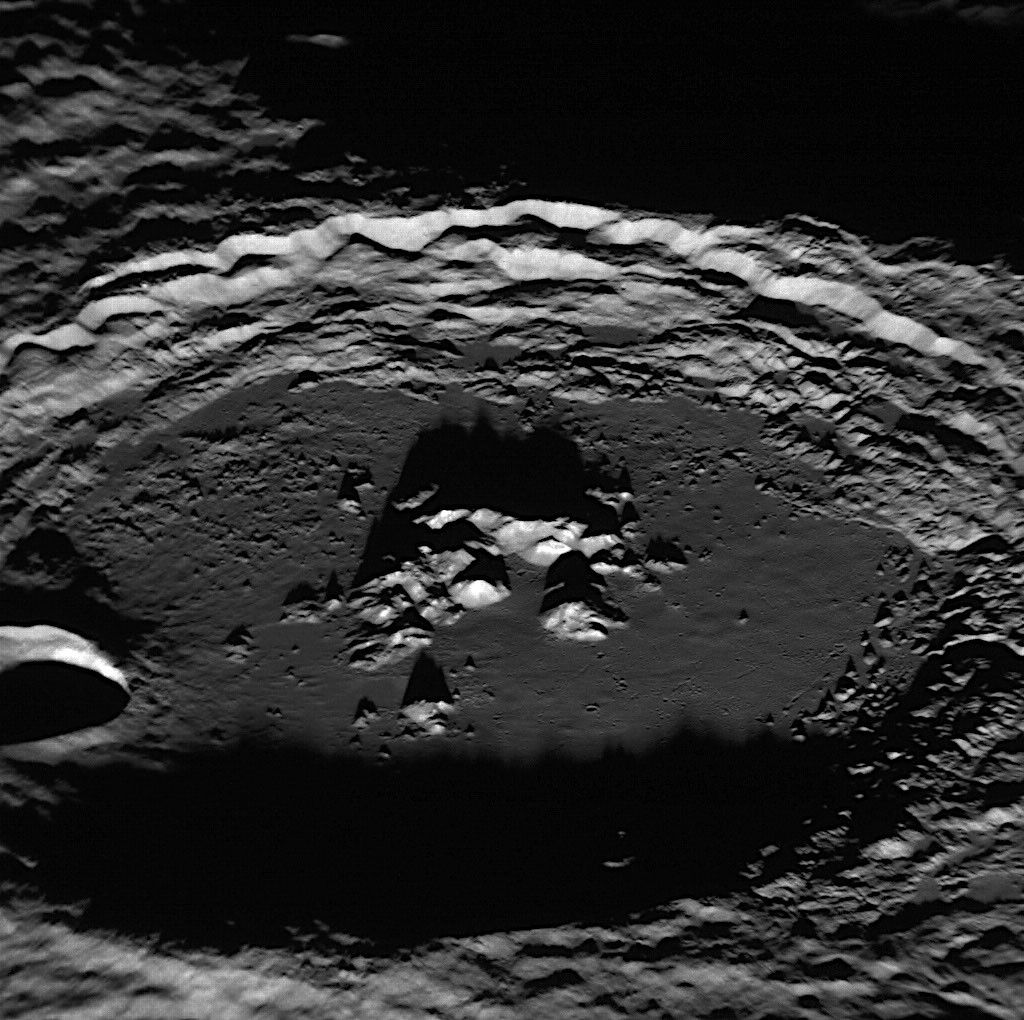 Named in 2008 for the Brazilian painter Tarsila do Amaral, Amaral crater was imaged during MESSENGER's first Mercury flyby and discovered to contain bright central peaks that were relatively blue in color compared to the surrounding terrain. The peaks resembled those of Eminescu in color, now known to be the location of an impressive collection of hollows. This spectacular image of Amaral highlights the topography of the peaks inside the crater but doesn't show wide-spread hollows as seen within Eminescu, though there may be a hint that perhaps the bright tips of Amaral's peaks do host hollows.