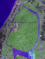 Okata is a small village of about 3,000 residents in northwest Japan. It is known internationally for its Solar-car rally. The village consists entirely of land reclaimed from the former Lake Hachirogata, and is mostly below sea level (Wikipedia). The image was acquired August 28, 2012, covers an area of 17.5 by 22.8 km, and is located at 40 degrees north, 139.9 degrees east.