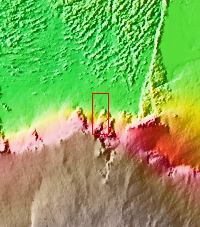 Olympus Mons is surrounded by an escarpment, a steep cliff-face between the volcano and the surrounding lava flows. The escarpment is called Olympus Rupes, and today's VIS image show part of this feature on the northeastern side of Olympus Mons.