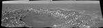 This cylindrical-perspective projection was constructed from a sequence of four images taken by the navigation camera onboard the Mars Exploration Rover Opportunity. It was taken with the camera's right eye.