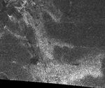 The image covers an area about 150 kilometers (90 miles) square, and is centered at about 45 degrees north, 30 degrees west in the northern hemisphere of Titan, over a region that has not yet been imaged optically. The smallest details seen on the image are around 1 kilometer (.62 mile) across. Features are less clear at the bottom of the image where the viewing was less favorable. A faint horizontal seam between the radar beams can be seen half way up in this image.