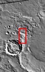 On Saturday, the Mars Exploration Rover Opportunity landed successfully in Meridiani Planum. This image should be slightly to the west of the landing spot, which should be in the flat area shown in the context image.