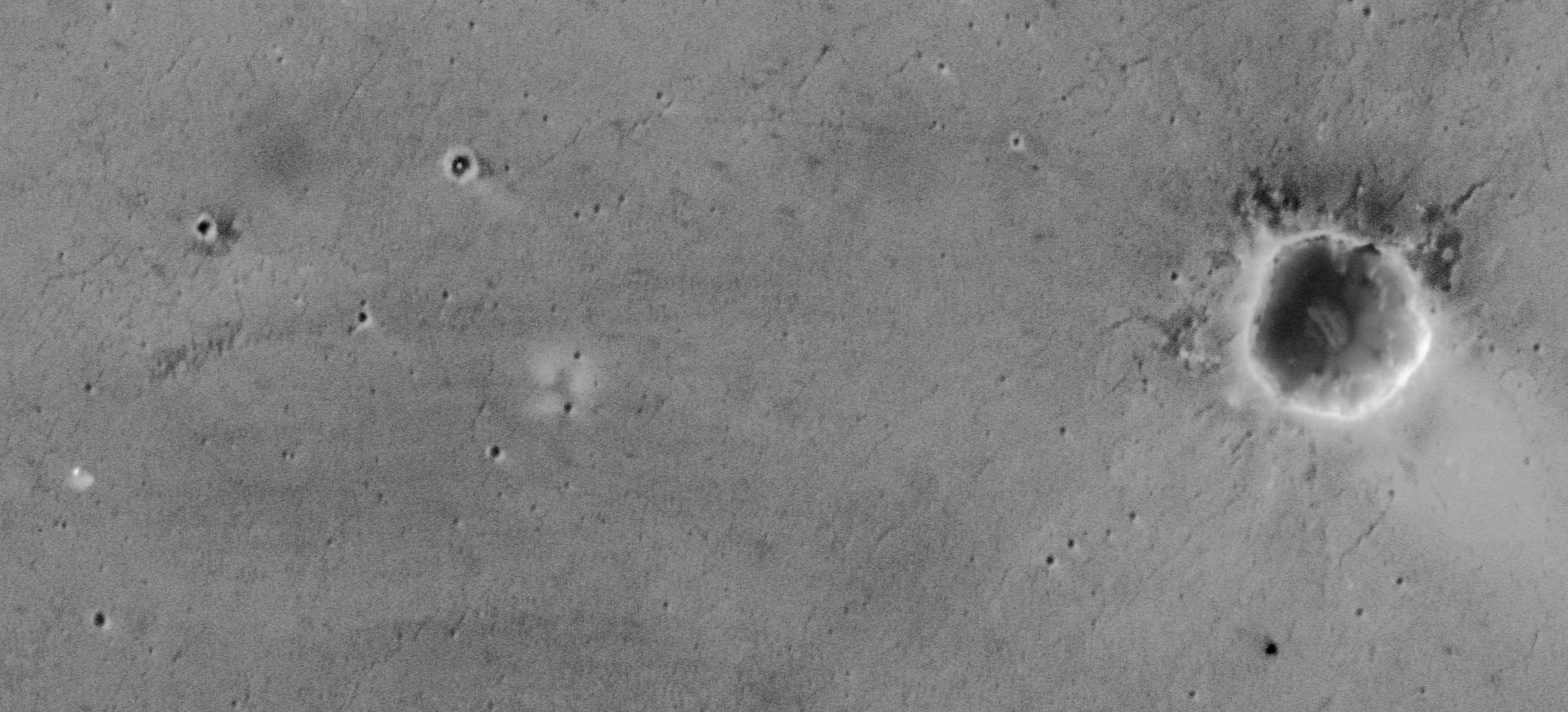 The camera captured this image with use of a technique called compensated pitch and roll targeted observation. In this method, the entire spacecraft rolls as it passes over the target area so the camera can scan in a way that sees details at three times higher resolution than the camera's normal high-resolution capability.