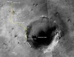 Visible in this map is a yellow traverse route beginning at Opportunity's landing site, Eagle Crater, and ranging 28.06 miles (45.16 kilometers) to its final resting spot on the rim of Endeavour Crater. The rover was descending down into the crater in Perseverance Valley when the dust storm ended its mission.