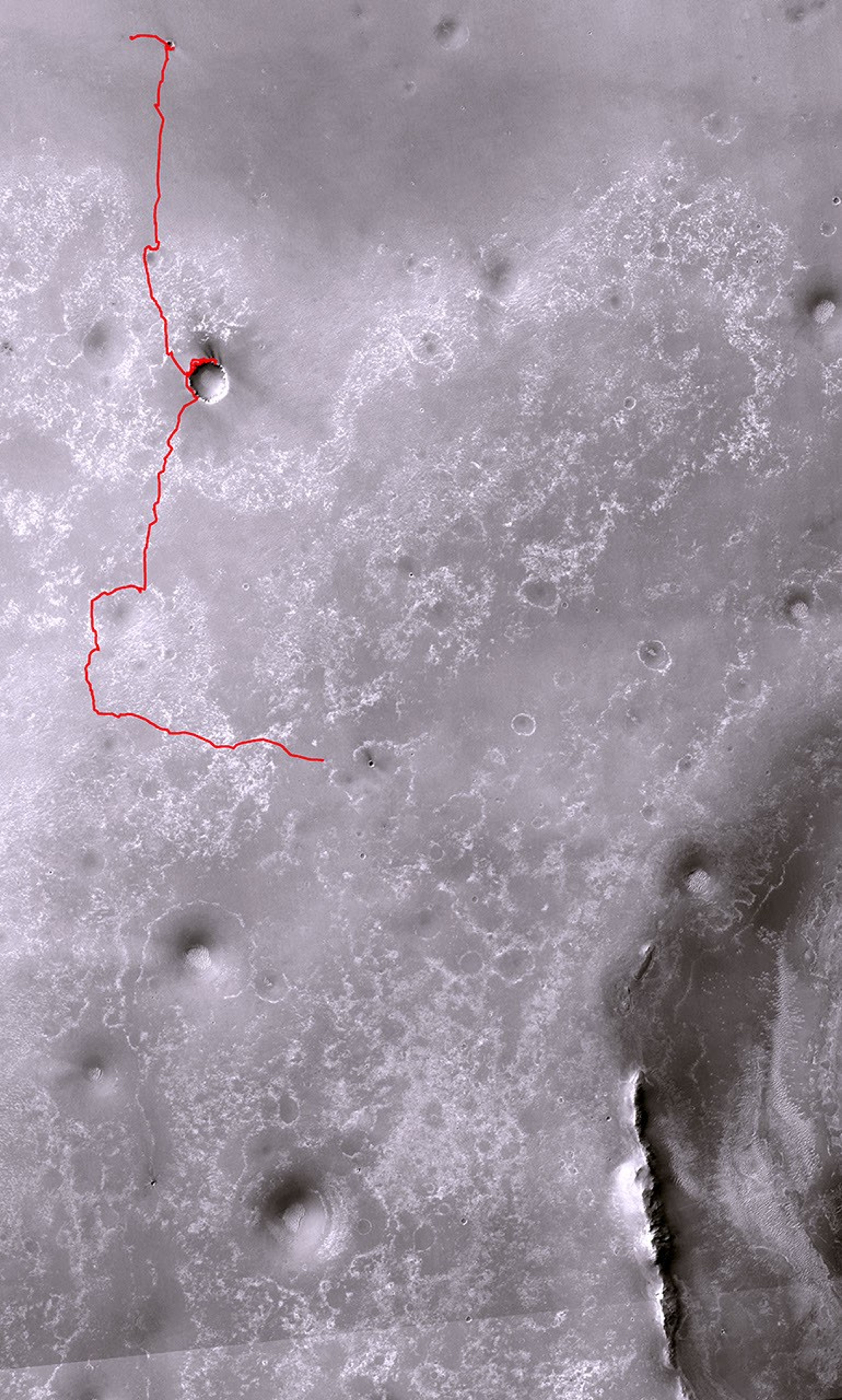 The base map is a mosaic of images from the Context Camera on NASA's Mars Reconnaissance Orbiter.