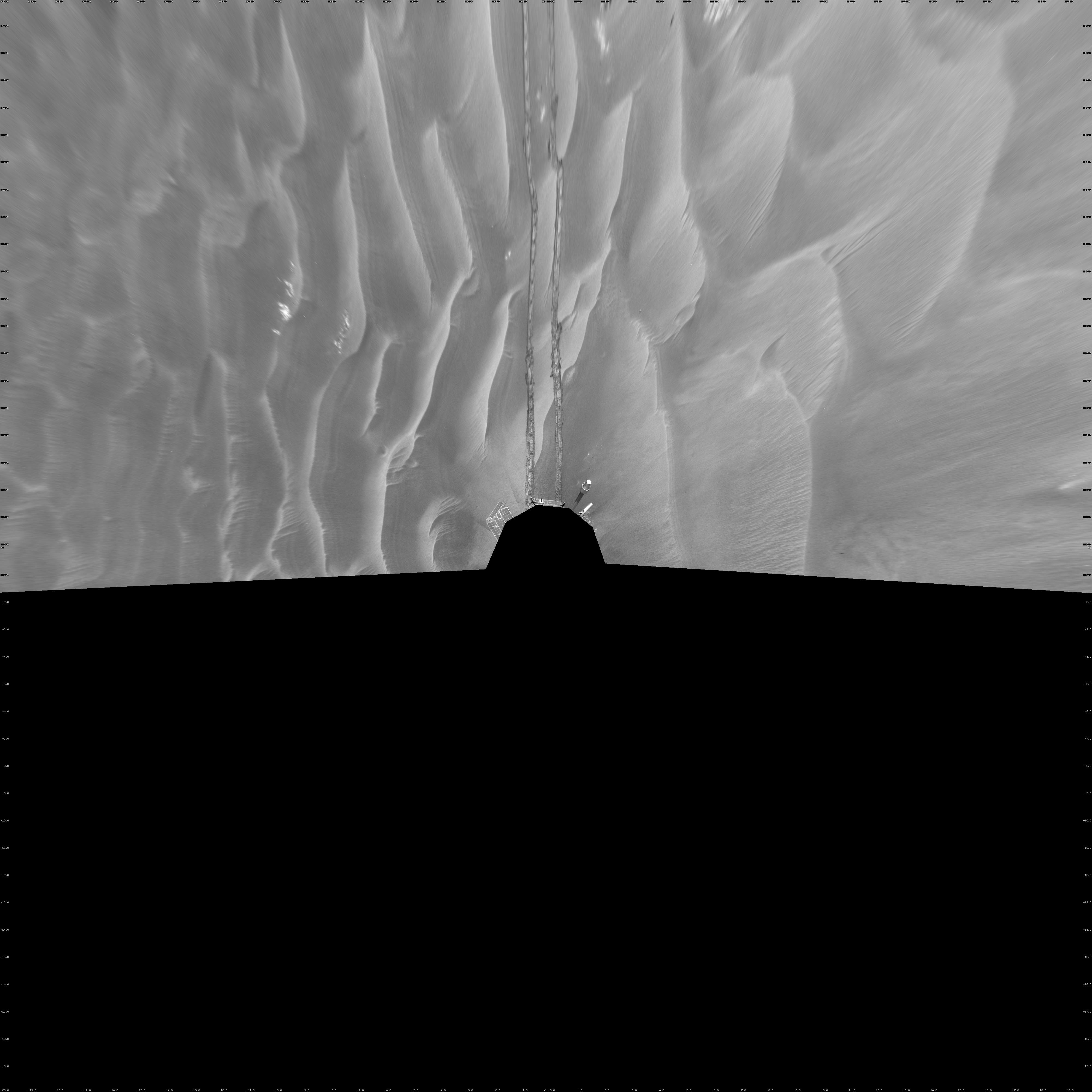 The rover had driven 111 meters (364 feet) southward on the preceding sol. Tracks from that drive recede northward in this view. For scale, the distance between the parallel wheel tracks is about 1 meter (about 40 inches).
