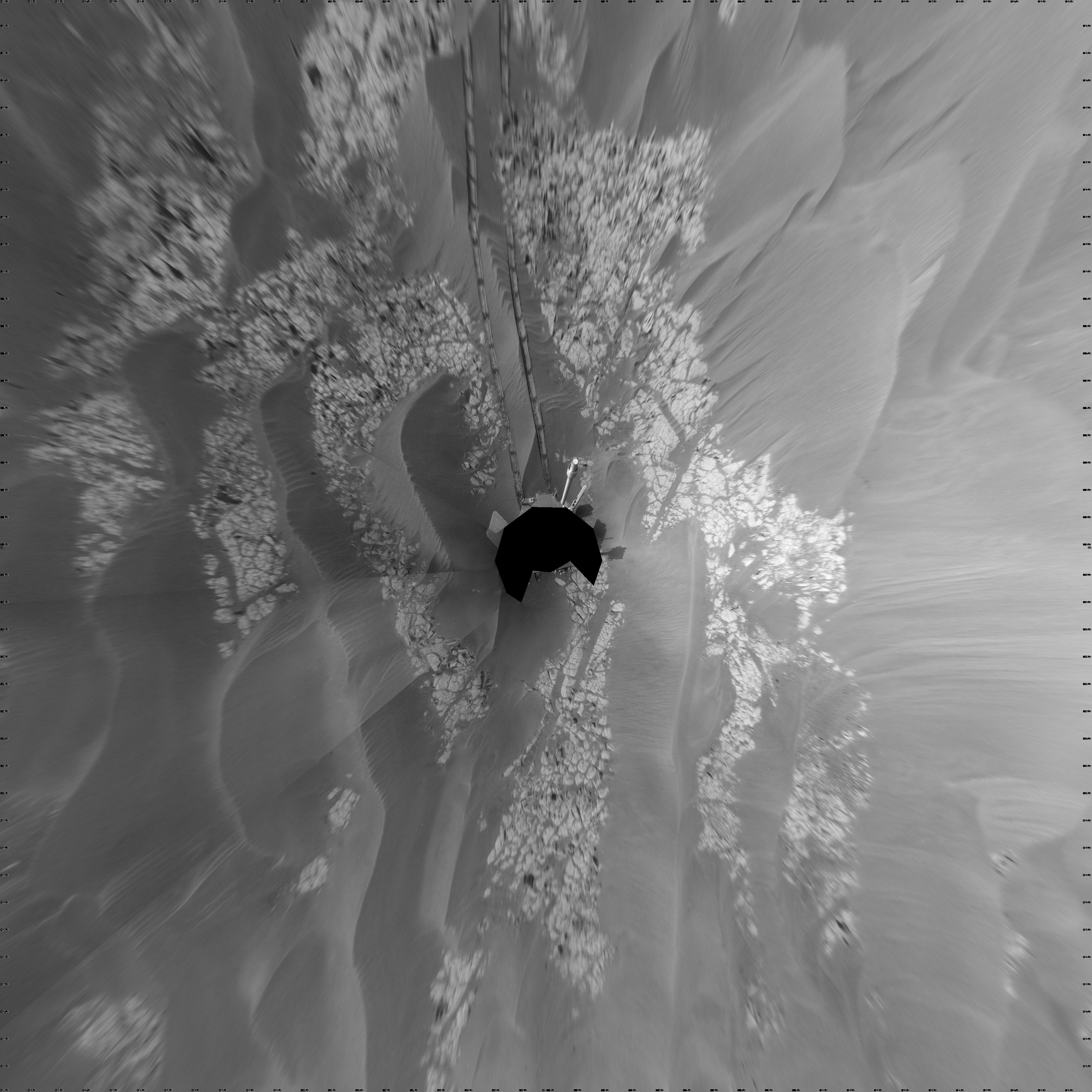 NASA's Mars Exploration Rover Opportunity used its navigation camera to take the images combined into this full-circle view of the rover's surroundings just after driving 104 meters (341 feet) on the 1,770th Martian day, or sol, of Opportunity's surface mission (January 15, 2009).