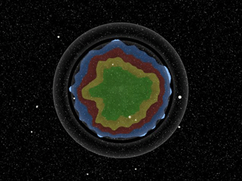 The movie begins by showing the star before it died, when its layers of elements (shown in different colors) were stacked neatly, with the heaviest at the core and the lightest at the top. The star is then shown blasting to smithereens. Spitzer found evidence that the star's original layers were preserved, flinging outward in all directions, but not at the same speeds. In other words, some chunks of the star sped outward faster than others, as illustrated by the animation.