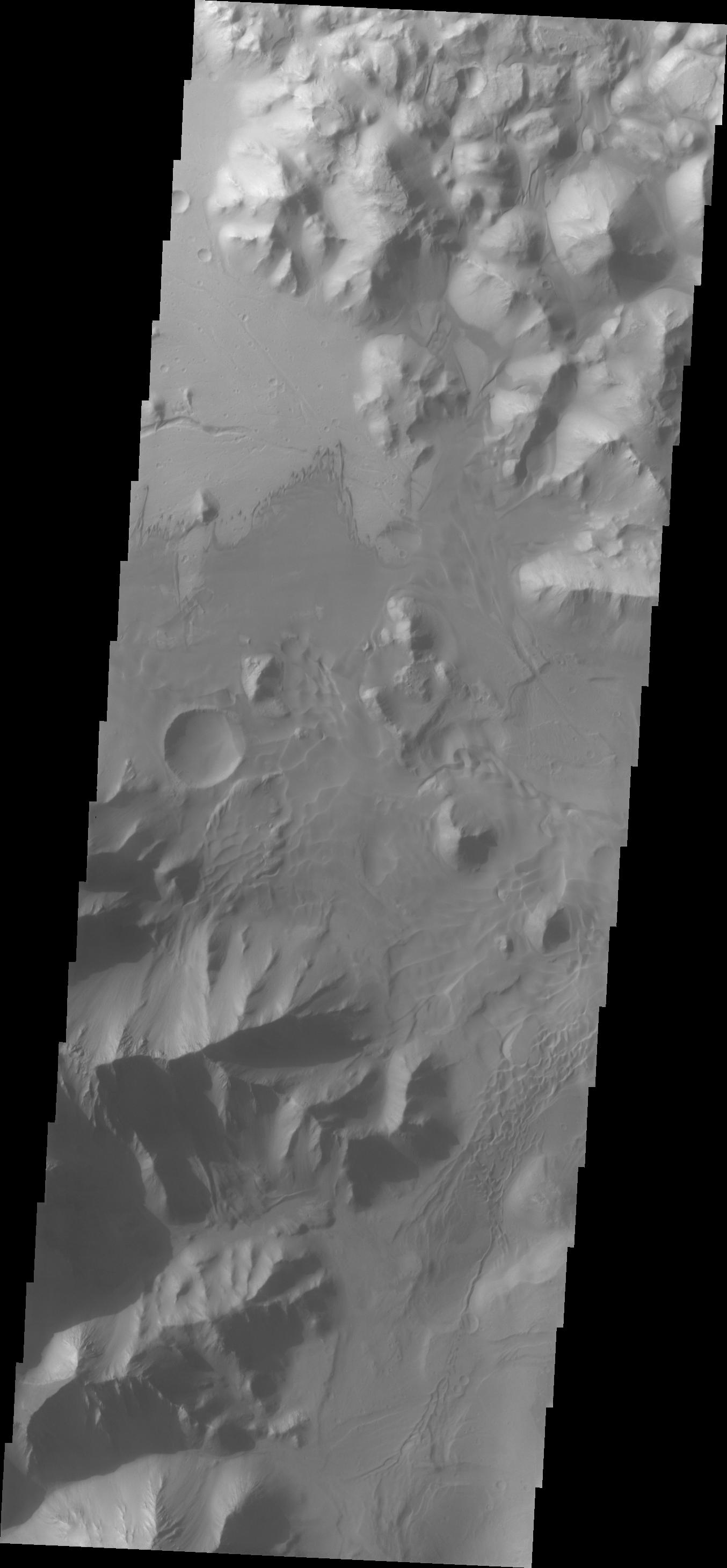 This VIS image shows dune forms on the floor of Orson Welles Crater.