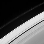 Two of Saturn's ring moons are captured in this Cassini spacecraft view, along with the signature of another. This image was taken not long after Prometheus passed, leaving a trail of dark gores in the inner edge of the F ring.
