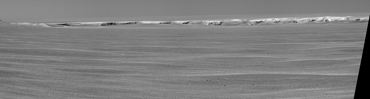 Victoria Crater is about five times wider than "Endurance Crater," which Opportunity spent six months examining in 2004, and about 40 times wider than "Eagle Crater," where Opportunity first landed. The great lure of Victoria is the expectation that a thick stack of geological layers will be exposed in the crater walls, potentially several times the thickness that was previously studied at Endurance and therefore, potentially preserving several times the historical record.