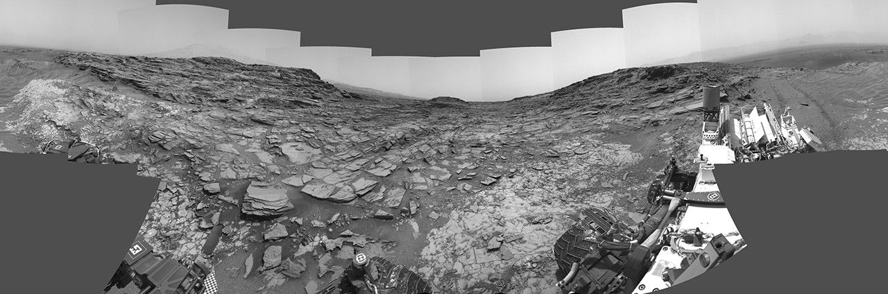 This 360-degree panorama from the Navigation Camera (Navcam) on NASA's Curiosity Mars rover shows the surroundings of a site on lower Mount Sharp where the rover spent its 1,000th Martian day, or sol, on Mars.