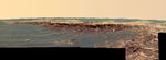 The panoramic camera aboard NASA's Mars Exploration Rover Opportunity acquired this panorama of the "Payson" outcrop on the western edge of "Erebus" Crater during Opportunity's sol 744 (Feb. 26, 2006). From this vicinity at the northern end of the outcrop, layered rocks are observed in the crater wall, which is about 1 meter (3.3 feet) thick. The view also shows rocks disrupted by the crater-forming impact event and subjected to erosion over time.