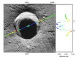 Today's image features Laxness, a crater on Mercury's northern plains named for Halldör Laxness, a twentieth-century Icelandic writer. The overlain MLA track bisecting Laxness reveals the crater's topography, which is difficult to resolve in images because of the crater's persistently shadowed interior. On the right of the image is a cross-section of Laxness showing how the crater's depth changes from point A to point B. The MLA data show that Laxness is a complex crater with a central peak (light blue). While the crater's central peak is not obvious in the Mercury Dual Imaging System (MDIS), it is clearly distinguishable to MLA.